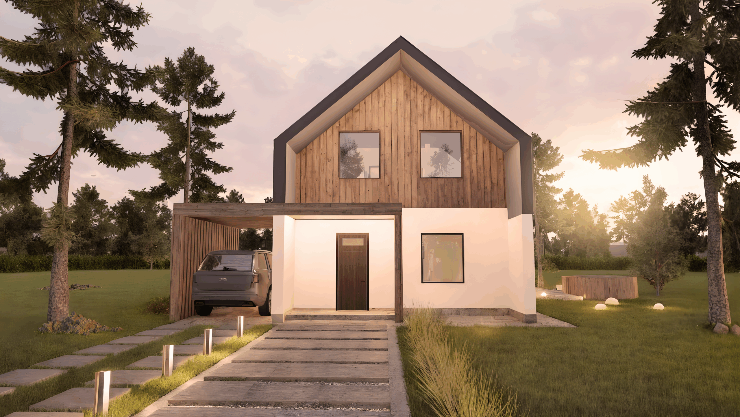 Ten indywidualny projekt domu jednorodzinnego stworzyliśmy z myślą o wąskich działkach w Poznaniu i okolicach – sprawdzi się idealnie nawet na działce o szerokości od 12 metrów. Jako pracownia architektoniczna specjalizująca się w projektach domów szkieletowych, połączyliśmy ponadczasową estetykę współczesnej stodoły z funkcjonalnością odpowiadającą potrzebom dzisiejszych rodzin.