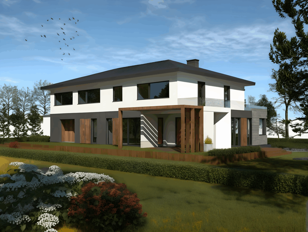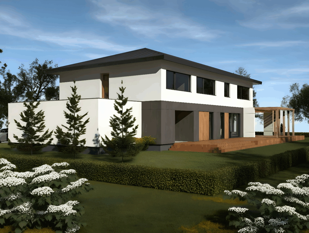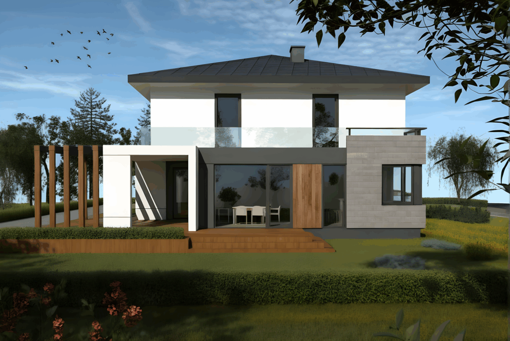 ✓ Nowoczesna, ponadczasowa estetyka – minimalistyczna forma i naturalne materiały to architektura, która nie wychodzi z mody