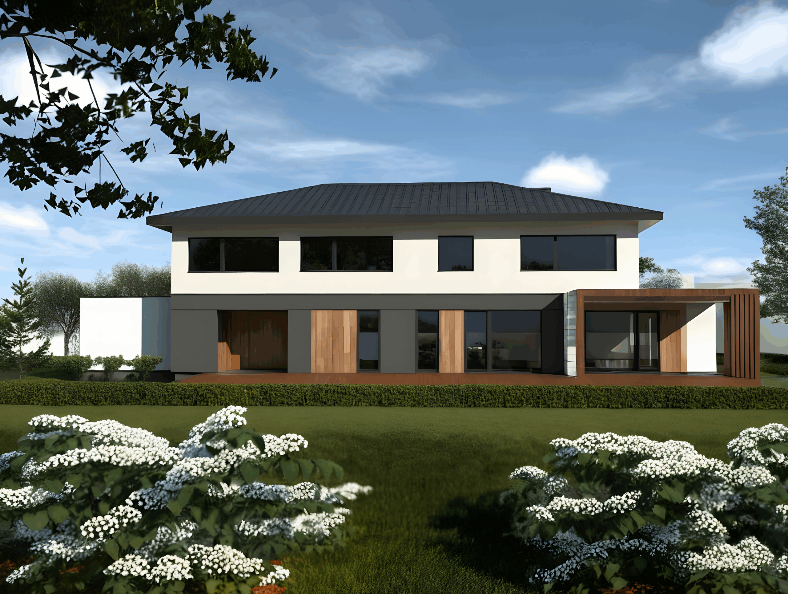 ✓ Nowoczesna, ponadczasowa estetyka – minimalistyczna forma i naturalne materiały to architektura, która nie wychodzi z mody