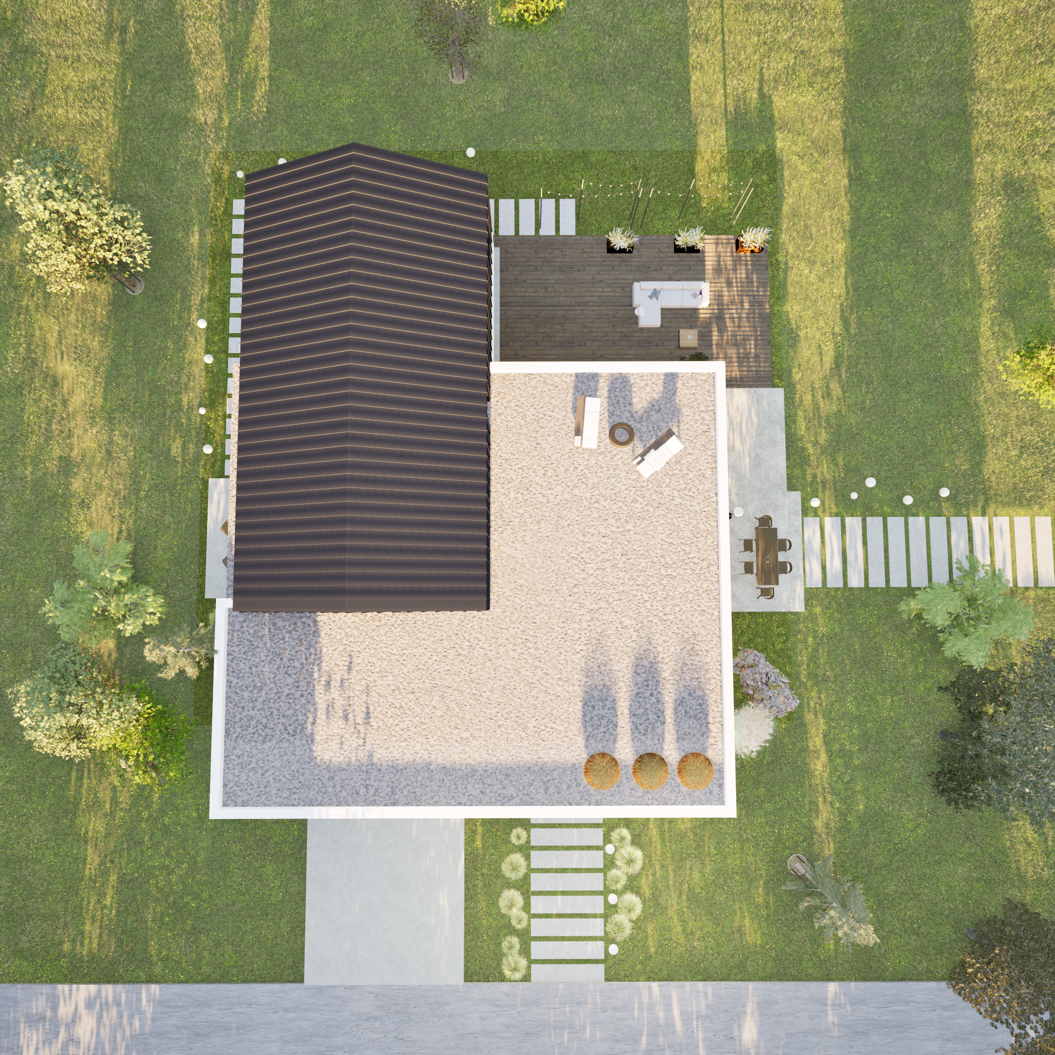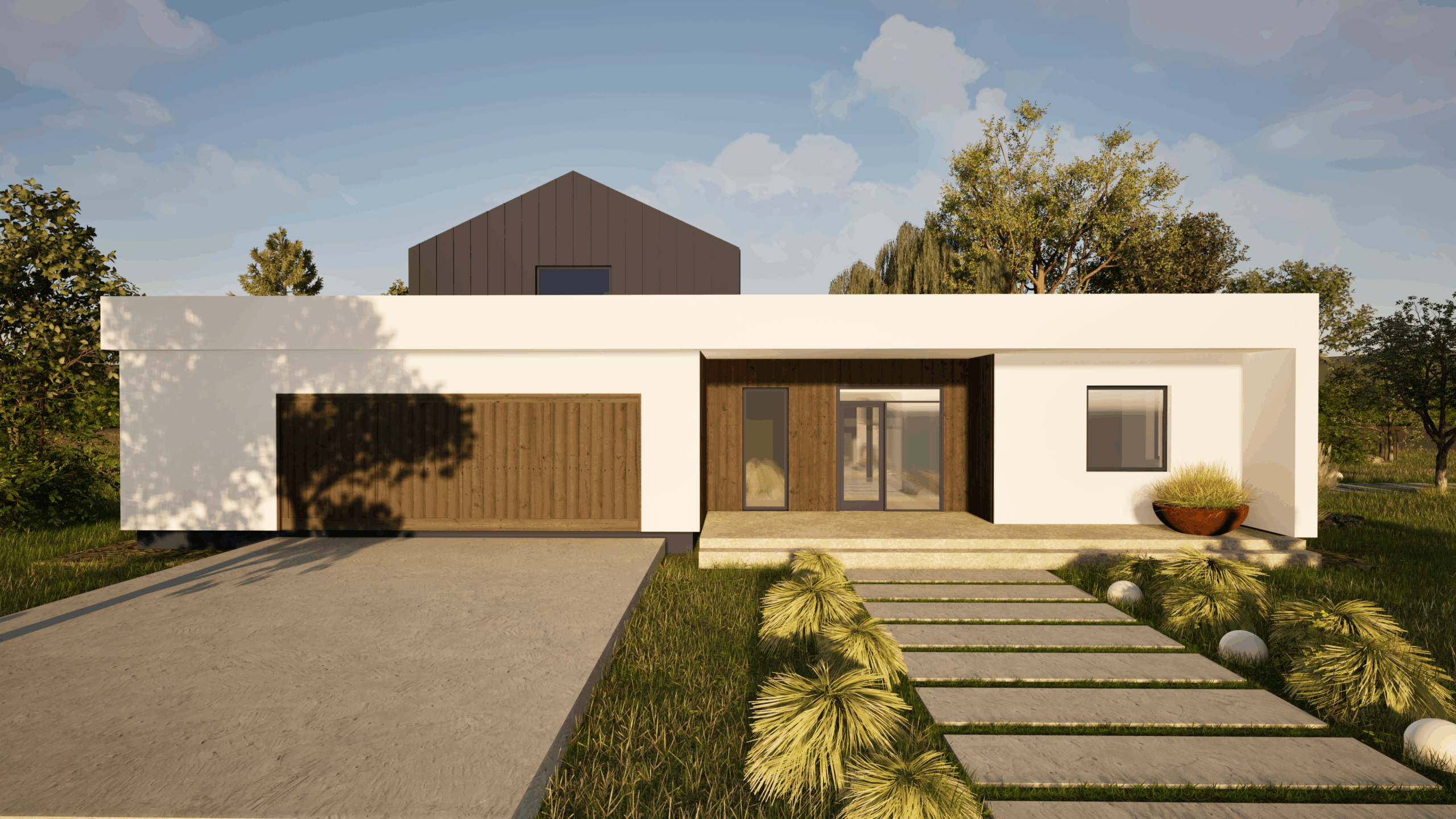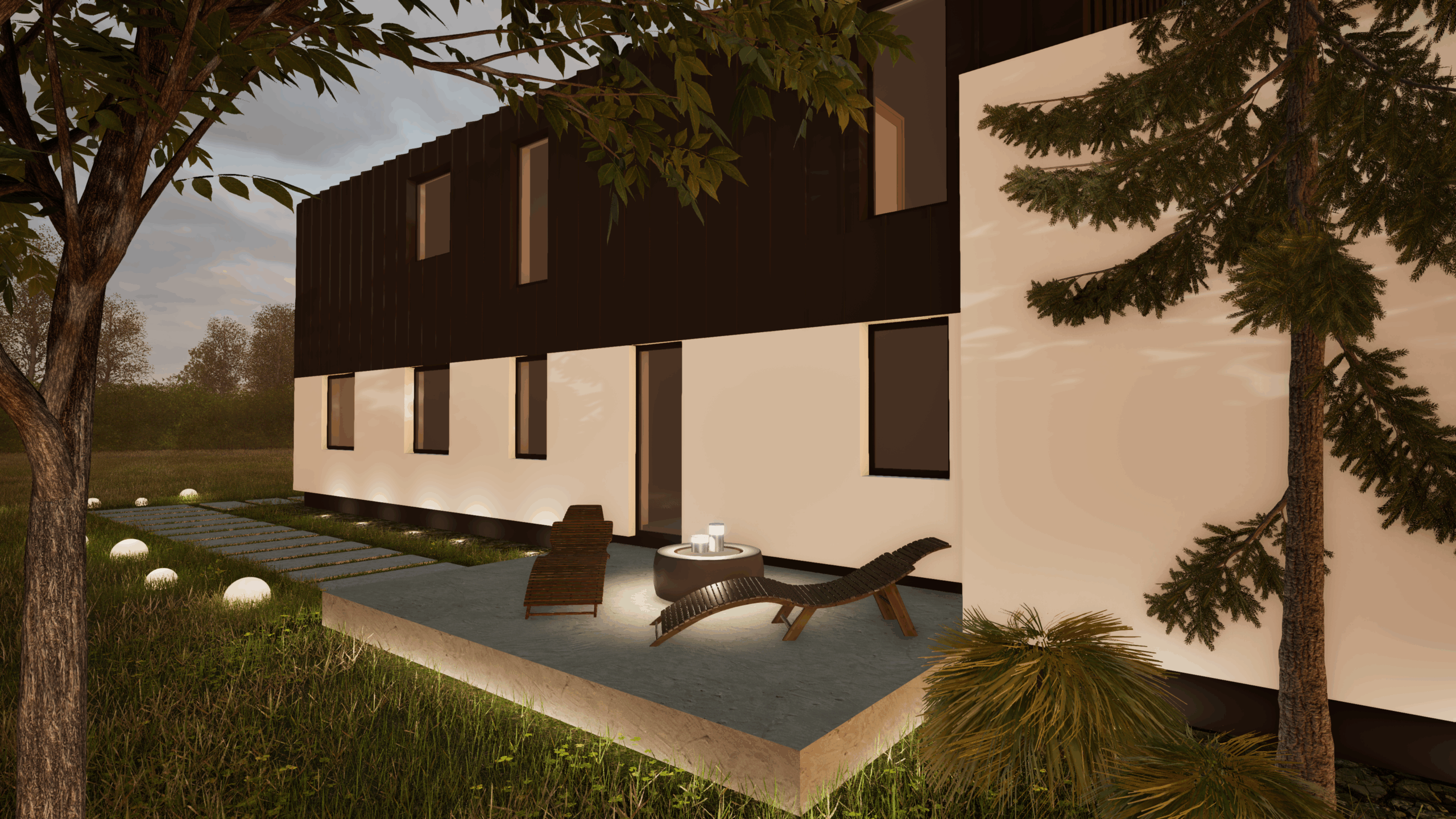 Projekt tego domu powstawał organicznie – na początku w sercach i głowach przyszłych mieszkańców , potem dojrzewał w trakcie kolejnych spotkań, na których analizowaliśmy układ funkcjonalny i powierzchnie pomieszczeń. W ostatniej fazie pracy nad koncepcją wspólnie oglądaliśmy bryłę 3D a także układ przestrzenny wnętrz. Czy powstał dom idealny ? Na pewno powstał projekt domu, będący odpowiedzią na plany i marzenia , w sposób optymalny dopasowany do miejsca, działki, otoczenia, stron świata , dopasowany do warunków zabudowy. Razem zaprojektowaliśmy go tak, aby zapewnić najwyższy komfort życia codziennego w eleganckiej ale też prostej formie. Unikatowy układ przestrzeni łączy strefy wspólne z prywatnymi, tworząc idealne środowisko zarówno do rodzinnego życia, jak i chwil relaksu. Wizualizacje ostatecznie przekonały nas o tym , że to będzie piękny i funkcjonalny dom….. wymarzony.