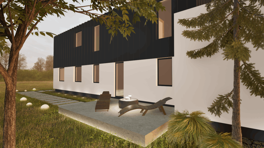 Przestronny taras na piętrze to dodatkowa przestrzeń życiowa – idealna na poranną kawę w promieniach słońca czy letnie wieczory pod gwiazdami.