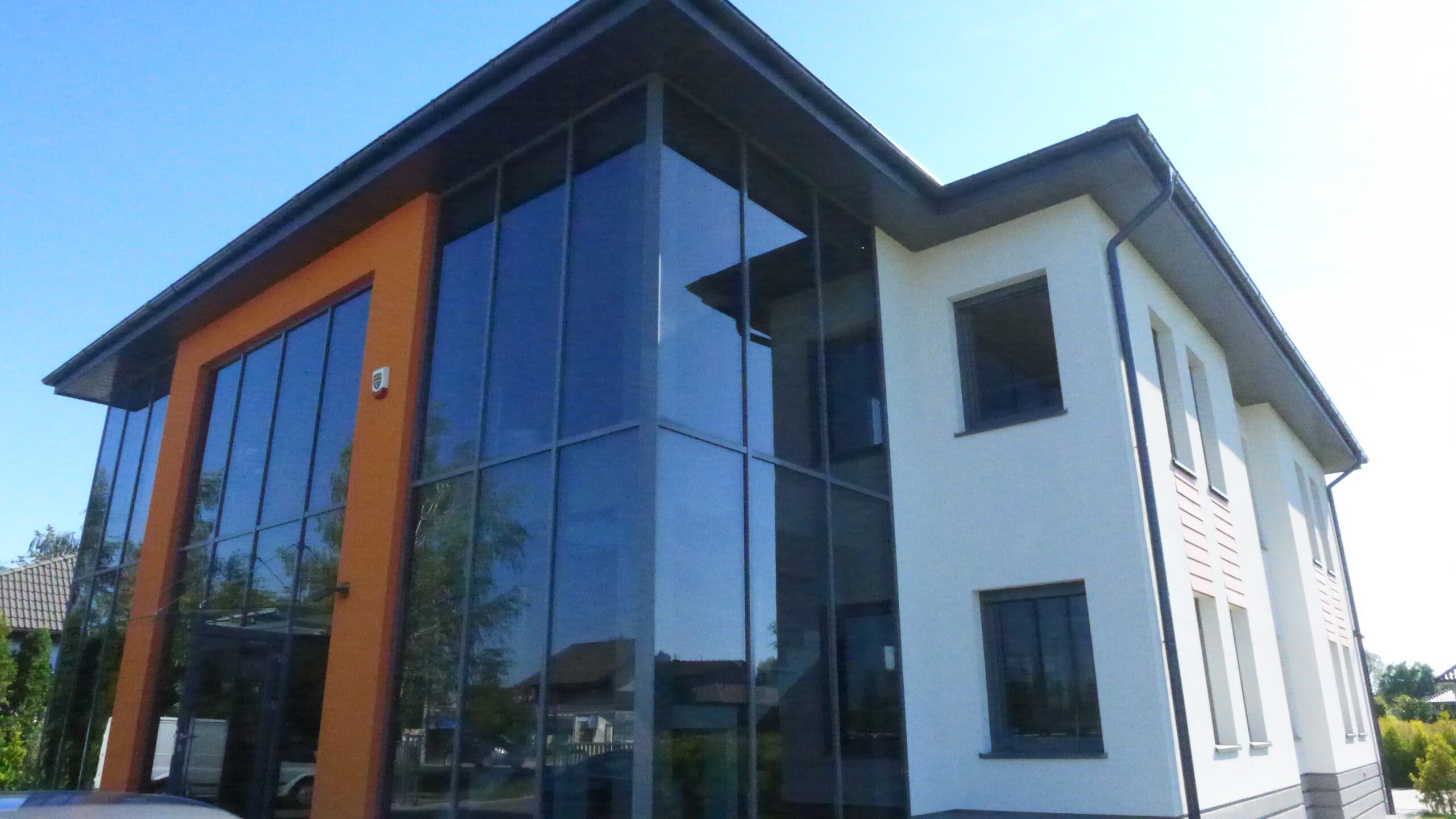 Przeszklona fasada, nowoczesna bryła i przemyślany układ funkcjonalny – to architektura, która od pierwszego spojrzenia komunikuje profesjonalizm i ambicje lidera branży okulistycznej. W otoczeniu typowych obiektów przemysłowych ten budynek wyróżnia się charakterem i jakością, pokazując, że biznesowa przestrzeń może być równocześnie reprezentacyjna i w pełni funkcjonalna.
